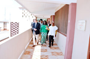 The Principal of the College, Mrs Cynthia Anim, together with the Council Chairperson, Prof. Mrs Olivia Kwapong, led the Duke of Edinburgh and his delegation on a guided tour of the campus. They shared the rich history of PWCE, explaining that the College was established in 1858, and in 1925 hosted its first Early Childhood Education class introduced by C. P. Moir. They further noted that the College has remained a female institution since its inception and is now running accredited Degree programmes aligned with national standards for teacher education.